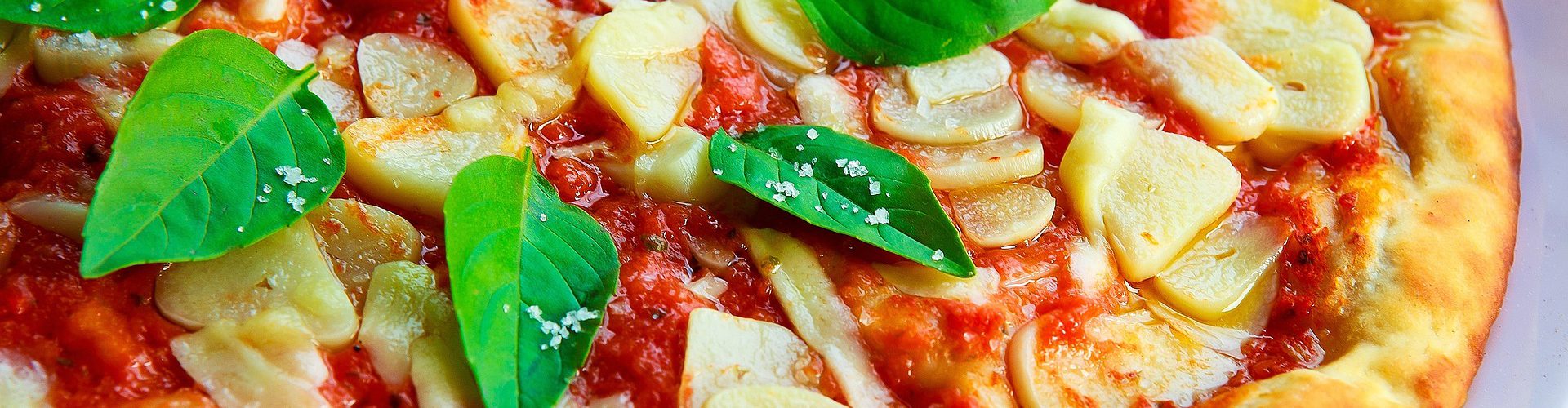 Toutes nos pizzas sont garnies d’un mélange emmental/mozzarella, d’olives noires et d’origan, sauf indication base crème ci-dessous. All of our pizzas are topped with an emmental / mozzarella blend, black olives and oregano, unless indicated cream base below.